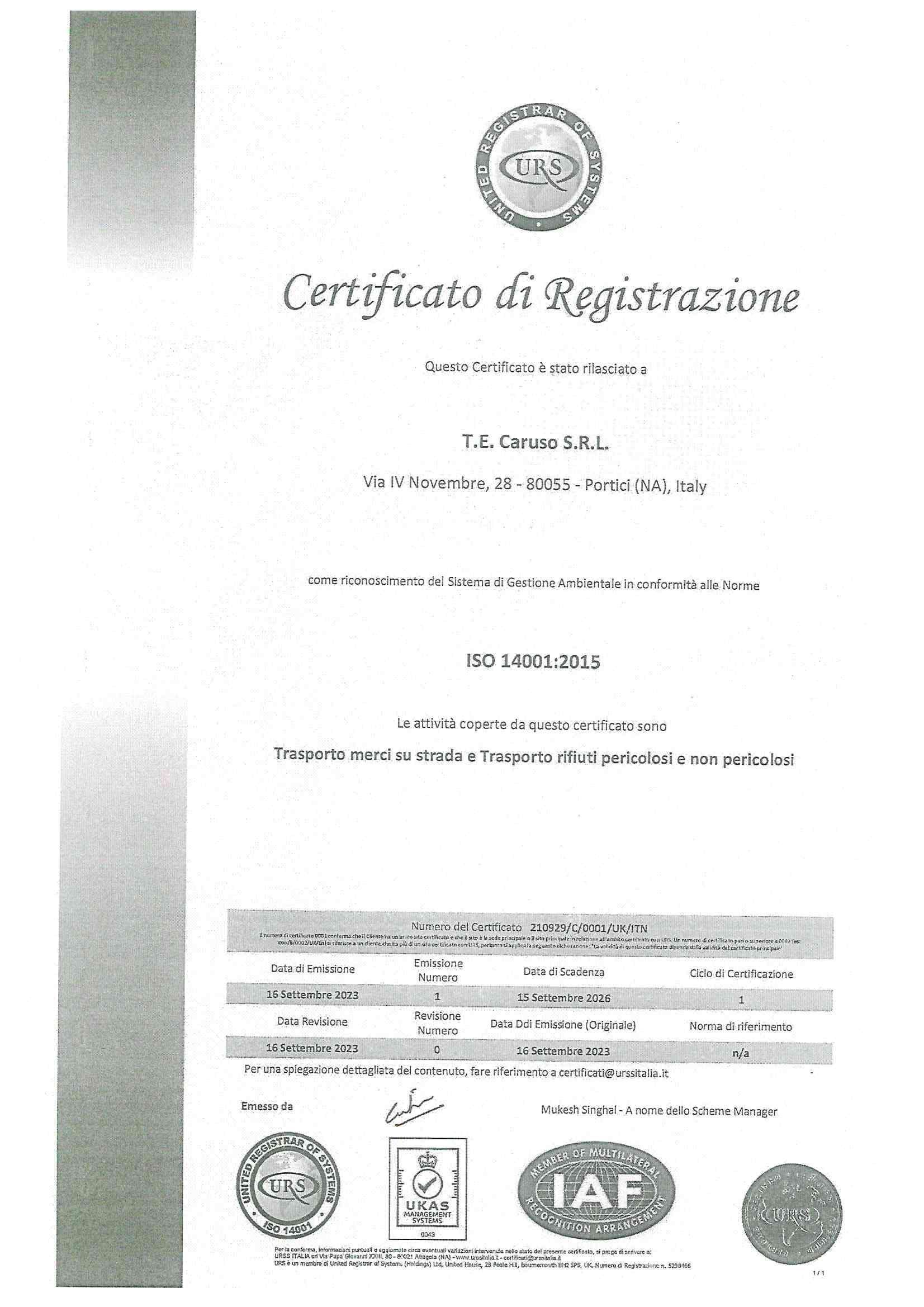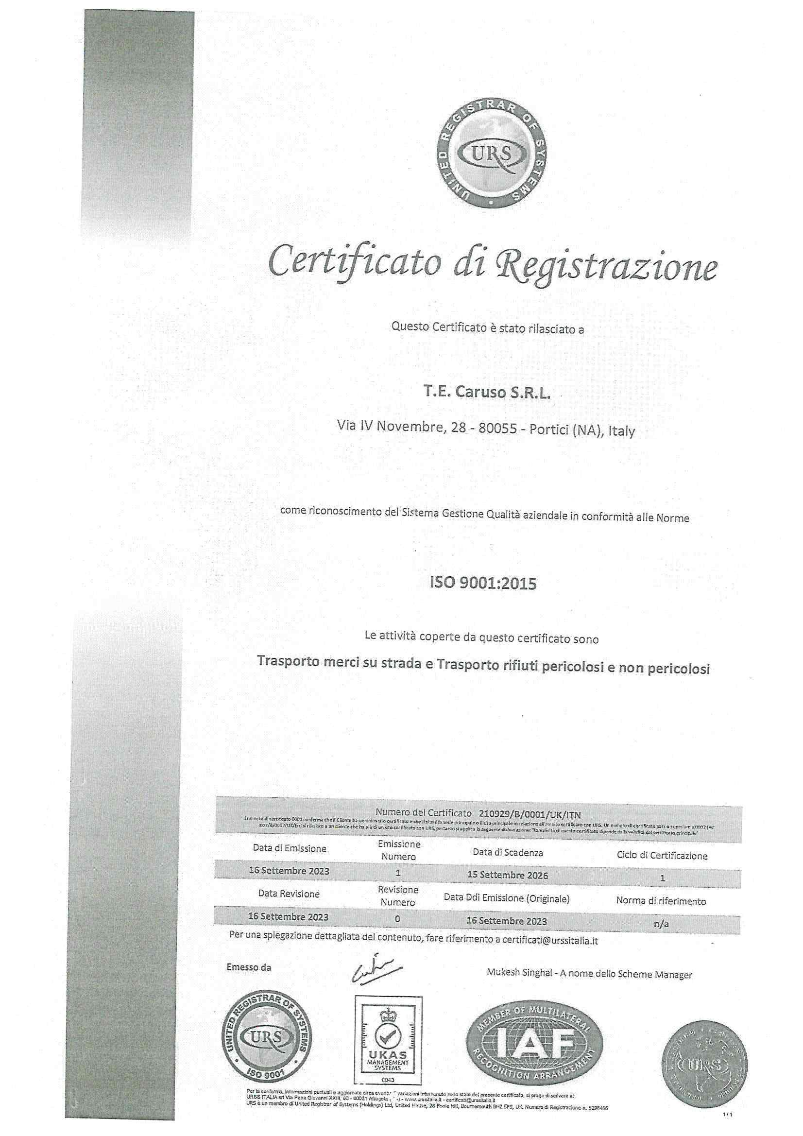 L'azienda Te Caruso S.R.L. avvia la sua attività nel 1985, ad oggi, la terza generazione gestisce una flotta di 20 camion. La Te Caruso S.R.L. è attiva nel settore del trasporto merce su strada e di rifiuti pericolosi operando a livello nazionale con una clientela attiva di oltre 30 e si impegna ogni giorno a offrire servizi sempre più di qualità.
